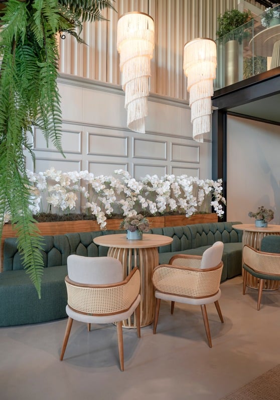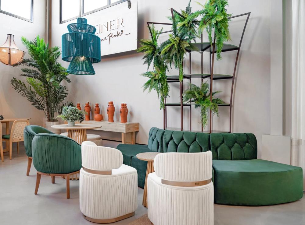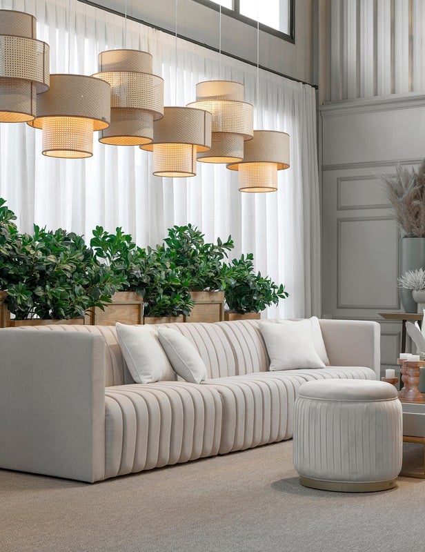 As poltronas, cadeiras, sofás e puffs apresentam um design contemporâneo e elegante, sendo um destaque visual. Os tecidos, especialmente selecionados, oferecem uma variedade de cores para combinar com qualquer evento.