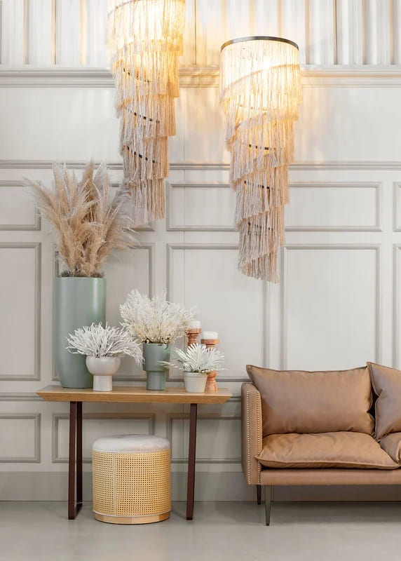As luminárias da linha trazem luz e requinte ao seu ambiente, com um estilo totalmente autêntico e inovador, Taís Puntel traz a você luminárias de kouro, tecido, trama e palha natural.